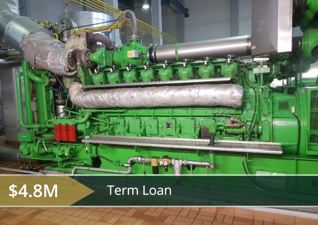 Clubhouse Capital secured a $4.8 million term loan to fund the acquisition and installation of an array of equipment for a Bristol County manufacturer, including back-up generators and a co-generation system. The loan was funded by a national bank, supported by an SBA guaranty, and featured a fixed interest rate in mid 5% range. (Winter 2019)